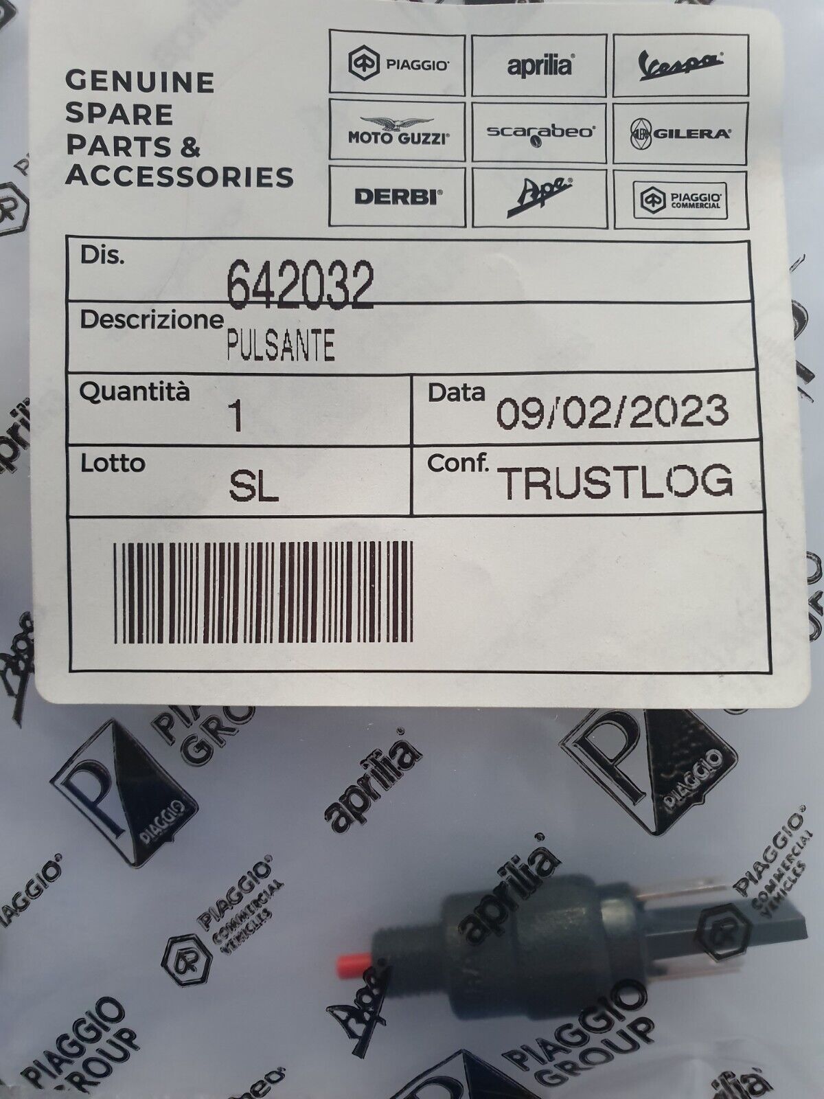PULSANTE STOP VESPA GTS LX BEVERLY LIBERRY SCARABEO 642032ORIGINALE PIAGGIO.